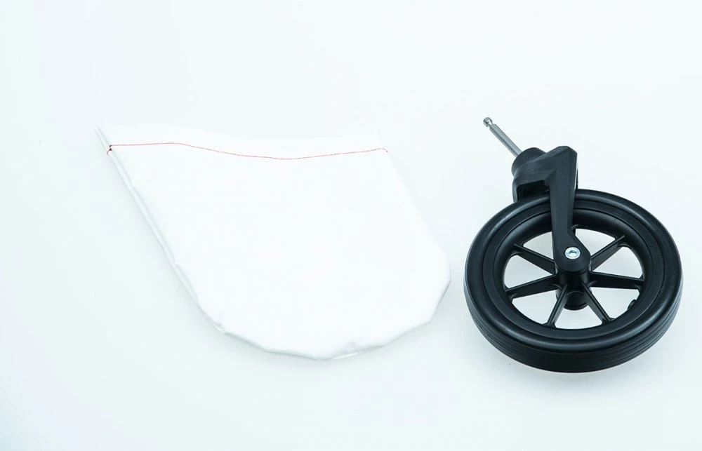 Drittes kleines Rad vorne zu Leggero Vento. Dieses Rad ist nur für den Kinderwagengebrauch vorgesehen. Beim Ankuppeln des Anhängers ans Fahrrad unbedingt vorher entfernen. Einfache Montage. Aufbewahrung im mitgelieferten Säckchen mit Klettstreifen. Einfache Handhabung mit Einrastfunktion, lässt sich mittels Knopfdruck wieder lösen.